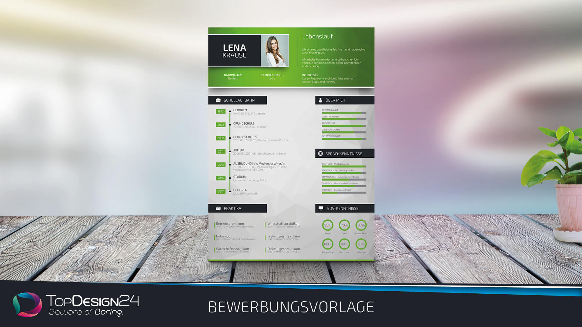 Die Bewerbungsvorlage beinhaltet: